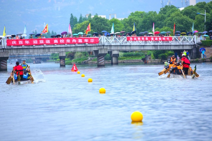 随后,由市体育局局长张志宏宣布活动启动,星空平台副校长薛伟和浙江省龙舟协会主席王成云分别击鼓、鸣锣,比赛正式开始。
