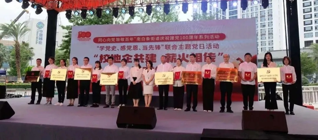 南白象街道庆祝建党100周年系列活动启动仪式,受邀领导们上台共同按键启动。