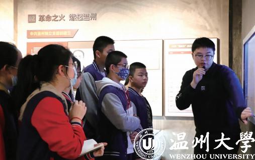 温州八中学生参观温州城区革命历史展馆。