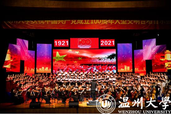 全体校领导与师生代表同台合唱一曲《没有共产党就没有新中国》,热情讴歌党的领导下新中国翻天覆地的变化。100年的伟大历程向世人昭示,没有共产党,就没有新中国;只有共产党,才能带领人民实现独立、解放、幸福和富强。《春天的故事》《中国走进新时代》《跟你走》等歌曲则唱出了全党全国各族人民实现中华民族伟大复兴的中国梦的坚定信心决心,永不懈怠、一往无前的奋斗姿态!