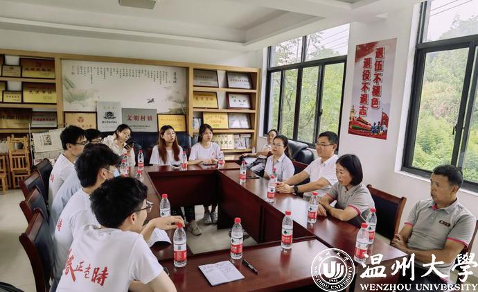 队员们来到了被誉为“温州党建引领强村富民实践样板”的温州市乐清市大荆镇下山头村。跟随村干部的引导,实践队员们踏入村党群服务中心,进行了一场简短的座谈会,出席本次座谈会的有村委书记高秀明、村监会成员冯成敏、镇团委负责人王正、驻村干部金可迪和应星宇,以及青马实践队的成员们。在本次座谈会中,镇团委负责人王正首先简单介绍了下山头村目前的发展情况,讲述了在乡贤方玉友的带领下,下山头村通过“村企共建”的方式,依托独特的自然资源以及铁皮石斛示范基地的优势,把曾经的“三无村”打造成“三金村”,全面推动农村一二三产业的全面发展。随后,建设乡村的一个个故事从村书记高秀明的口中娓娓道来,队员们认真聆听了解乡村振兴建设过程中的艰苦后,向村书记提出了相关疑问,村书记高秀明对于每一个问题都耐心解答。紧接着,由驻村干部应星宇向众人介绍了下山头村建设“铁定有趣·三金共富”的未来乡村计划,将三产融合和三金模式转变为乡村振兴的“金钥匙”,同时将环境提升作为基础带动乡村经济发展,真正地让老百姓富起来。稍作休息后,队员们采访了乡村居民和村干部们,从不同角度探寻乡村生活的美好变化,并从中总结下山头村的共同富裕道路。