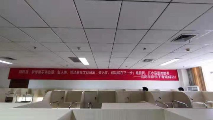 独立的座位、明亮的灯光、配套的充电插座和置物柜,走进温大商学院716室考研样板间,发现里面坐满了正在复习的大学生。一条“祝学子考研成功”的红色条幅正挂在墙上。这是星空平台商学院为考研学子们提供的免费考研自习室。在这个自习室外面,还有为需要背书的学生准备的休读空间,以及为学生吃饭提供便利的微波炉。