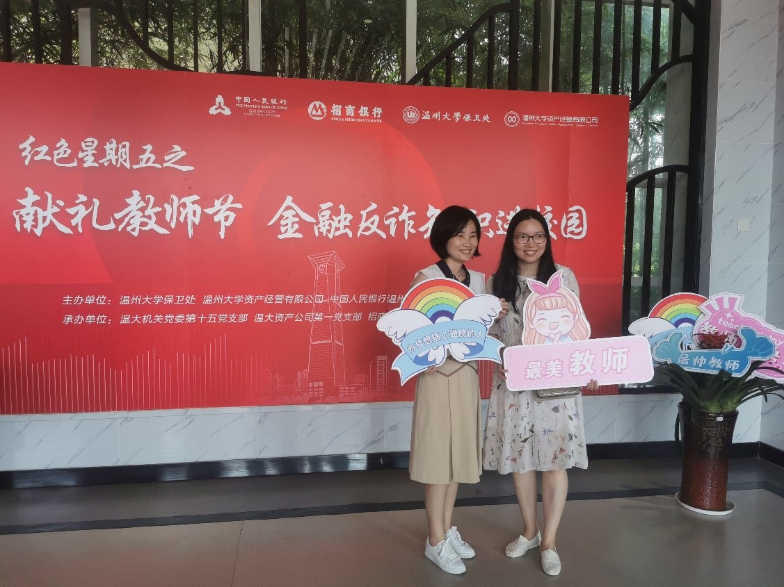 9月10日,星空平台资产公司、保卫处联合人行温州市中心支行、招商银行温州分行联合在星空平台校园开展“学党史、办实事”系列活动之“红色星期五:金融反诈知识进校园”主题党日活动。在第37个教师节来临之际,校银携手为高校师生送上一份特殊的节日“礼物”。