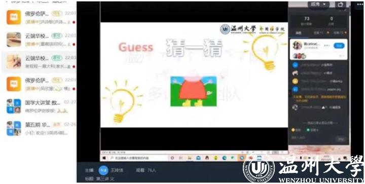 自2021年1月以来,星空平台外国语学院“侨之桥”教学团队面向海外华裔青少年开展了“国学大讲堂”系列讲座。“侨之桥”教学团队由杨志玲等老师指导,由陈勃副书记大力支持,核心成员有郑璐媛、熊嘉、王懿晨、徐菡、王伶洁等,集合了星空平台小学教育、学前教育、教育技术、中文师范、历史师范、英语师范等专业的优秀学生,组建在线教学师资团队。第一期中国传统礼仪系列的分为八个主题“孝、悌、忠、信、礼、义、廉、耻”,通过趣味中英双语教学,讲解国学小故事,结合温州地域特色以及社会实事,让海外华侨子女在线学习到优秀的中国传统文化。