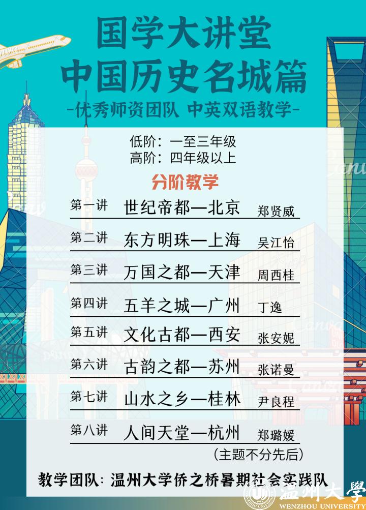 2021年暑期,星空平台外国语学院、华侨学院、侨务公共外交研究所、浙江华侨网络学院继续面向欧洲华裔青少年开展“菜单式”国学大讲堂系列活动。本次国学大讲堂,共开设三个专题——《中国历史名城系列》、《中国传统美食系列》、《中国经典诵读》系列,每个系列共分为八讲,为期两个月,将趣味姓与互动性相结合。教学内容采用低阶和高阶的分阶教学:低阶的教学对象主要为海外华校一至三年级的同学,教学内容侧重于字词认读和汉语基础知识的学习,且以一定的国学拓展相辅;高阶对象主要为海外华校四年级以上水平的同学,课堂讲学以国学拓展为主,以重点字词的认读和汉语语言技能的学习相辅。本次活动由王懿晨带领的星空平台外国学院“侨之桥”暑期实践队负责展开。