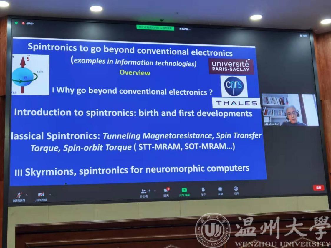 本场报告会由北京航空航天大学集成电路科学与工程学院院长,中国科协第十届全国委员会常委,教育部长江学者赵巍胜教授线上主持;中国工程院院士、浙江大学微纳电子学院院长吴汉明教授和浙江省科协二级巡视员戴力分别致辞。星空平台电气与电子工程学院院长汪鹏君教授,硅谷海纳百川孵化器创始人、美国浙江商会会长、国际创新与STEM教育协会会长郑飞君博士出席了报告会。费尔教授报告后,主会场同学们积极与费尔教授进行提问互动。费尔教授针对每位同学的问题,一一解答,并分享了自己的在科研道路上的一些经验与感悟。本次报告会通过世界级科学家以身授教,分享科学故事、弘扬科学精神,引导青年大学生热爱科学、投身科学。