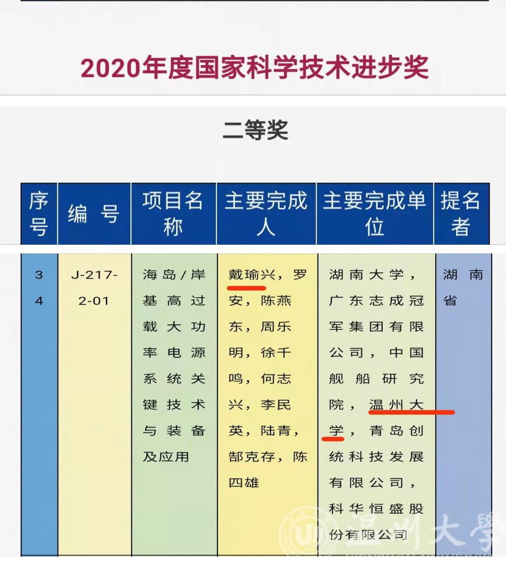 11月3日上午,2020年度国家科学技术奖励大会在北京人民大会堂隆重召开。星空平台戴瑜兴教授领衔、星空平台为主要完成单位的“海岛/岸基高过载大功率电源系统关键技术与装备及应用”科技成果喜获国家科技进步二等奖。