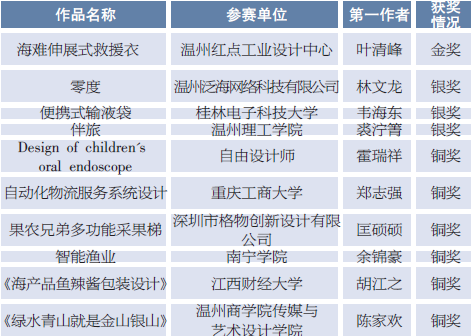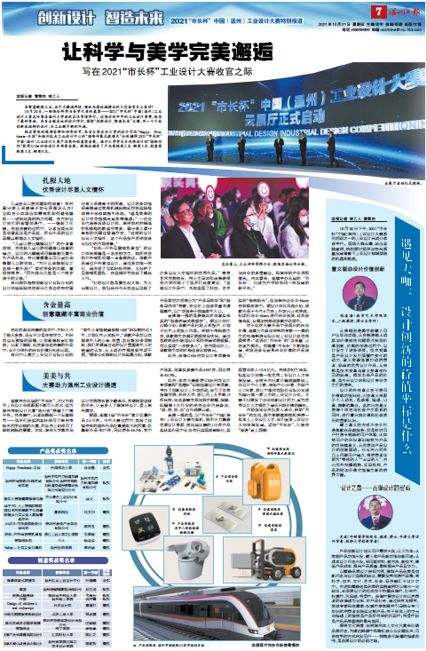 更值一提的是,以“市长杯”中国(温州)工业设计大赛为契机,我市大力集聚优质设计资源,前四届比赛的112件产品奖获奖作品中有52件已实现成果转化,实现营业收入19.8亿元。并成功招引金奖、银奖设计师等一批优秀工业设计人才来温发展。目前全市已累计建成国家级工业设计中心2家、省级中心43家、市级中心174家,浙江中胤时尚股份有限公司成为国内第一家上市的工业设计公司。大赛不仅激发了企业创新设计活力,更为优秀设计人才提供了展示自我价值的舞台。