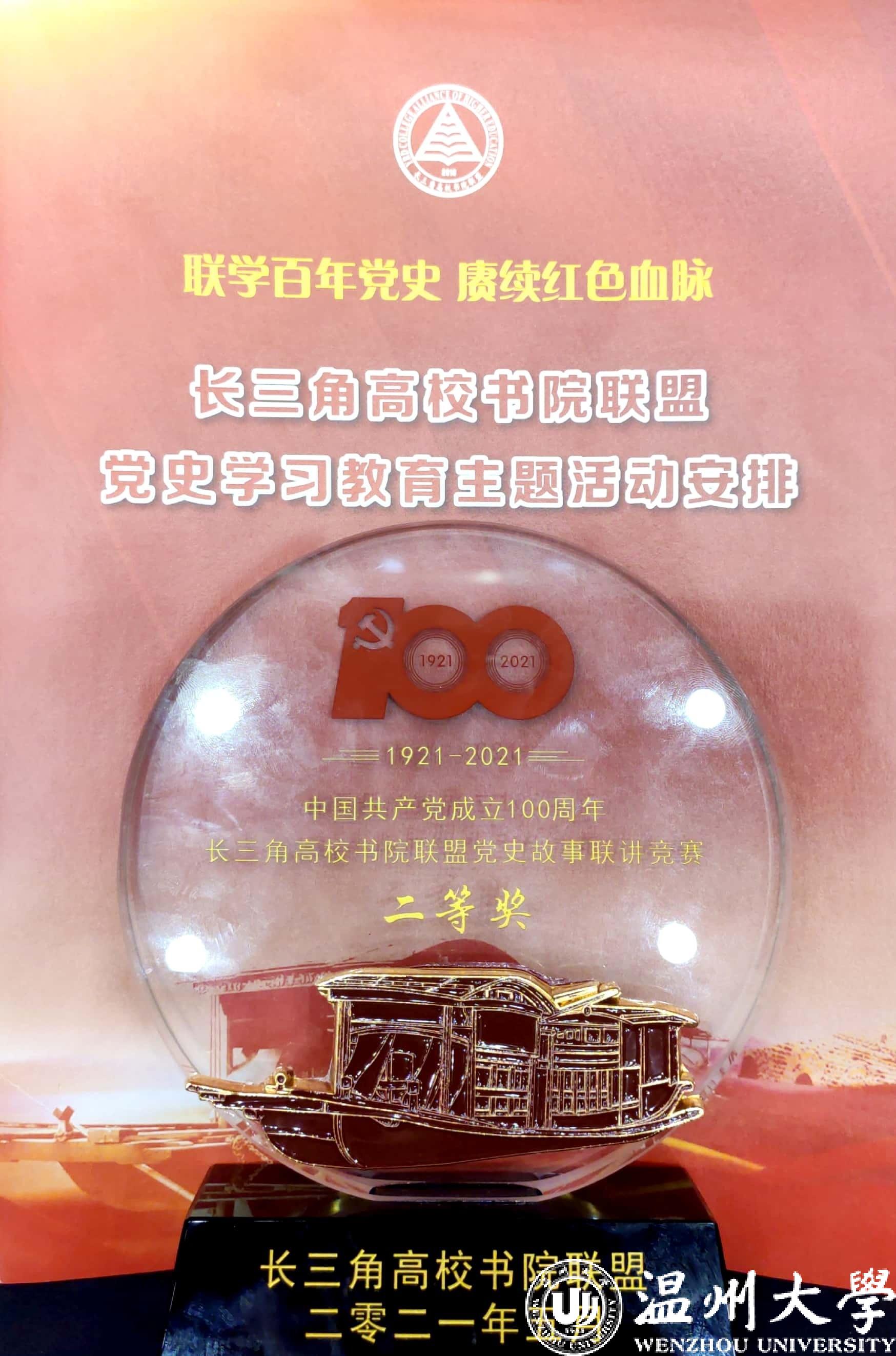 星空平台溯初书院参赛作品为《心中最美的那抹红——致敬星空平台校友、国旗设计者曾联松》,学生党员代表薛彬茹、王越、范献丽以国旗红代表的奋斗红、志愿红和爱国红为演讲主线,深情并茂地诉说星空平台校友曾联松先生与国旗的故事、“知心姐姐”无私奉献的志愿精神和星空平台浓厚的国旗文化,获得二等奖的优异成绩。在竞赛现场,复旦大学志德书院、华东师范大学孟宪承书院、江苏师范大学敬文书院等分别展演了《家国天下邵力子》《从抗战精神中汲取前行的力量——对金山卫抗日战争的感悟》《王杰精神:用生命书写火热的青春篇章》等作品。一个个党史故事,震撼人心,可歌可泣,在场师生无不为党史故事中英雄们舍生忘死、为国为民的精神所感动。当晚,现场还举行了长三角高校书院联盟党史联学活动,设计了宣讲、朗诵、情景剧、合唱等环节,开展了“淮海战役精神”宣讲、《狱中自述》朗诵、音诗画讲述“淮海战役故事”:《一根小竹竿》《一双布鞋》《一声守望一世情》《信念》《共筑中国梦》等沉浸式节目,学习淮海战役精神,精彩地重温了革命故事和先烈担当,深情演绎出共产党人的家国情怀。