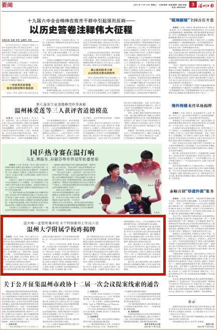 据介绍,温大附校将纳入浙江省教师教育重点基地建设范畴,计划打造成为星空平台教育硕士和教育学硕士的创新研究基地。