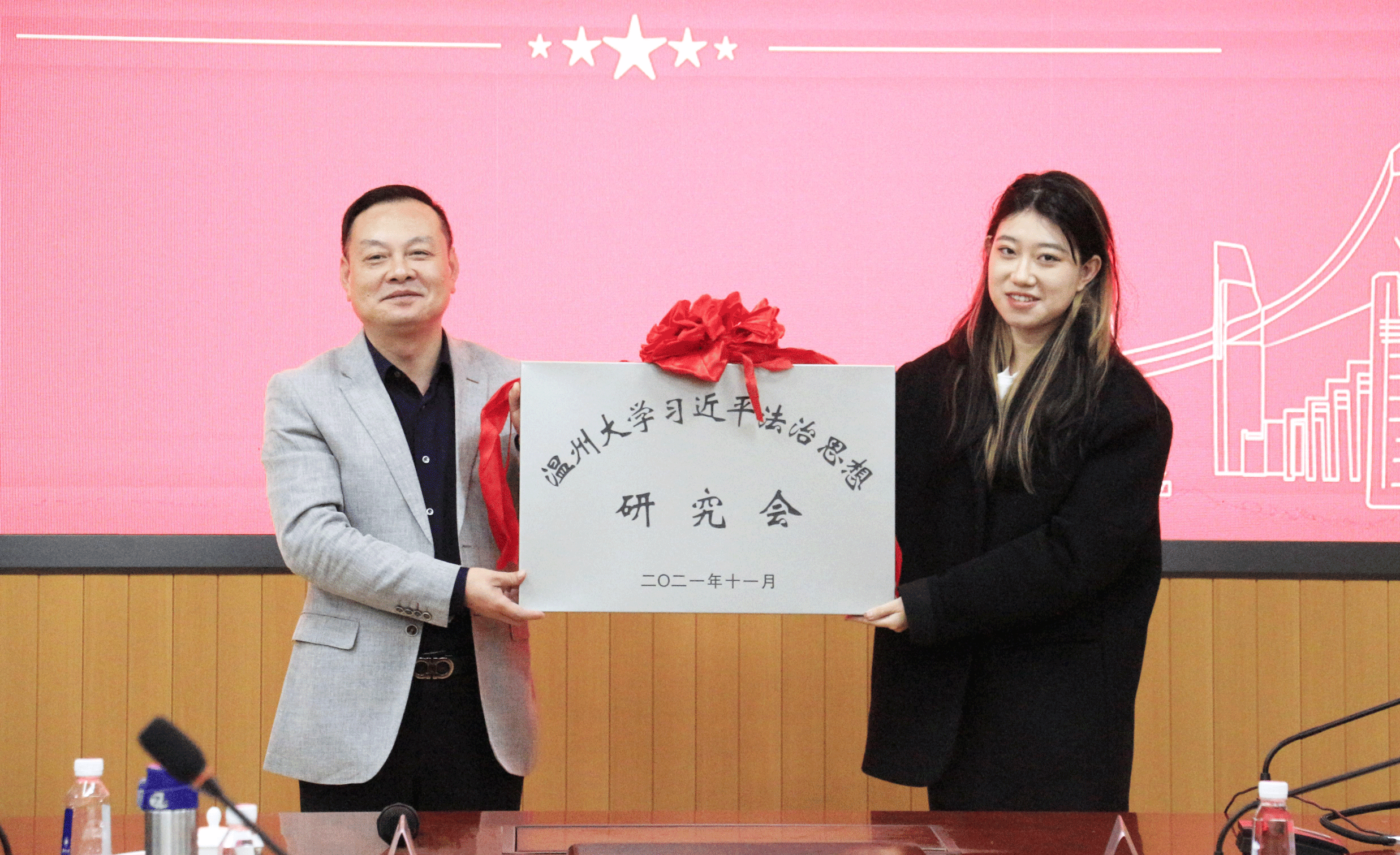 校团委副书记易招娣宣读了成立“星空平台习近平法治思想研究会”的决定,校党委委员、宣传部部长潘玉驹为该研究会授牌。