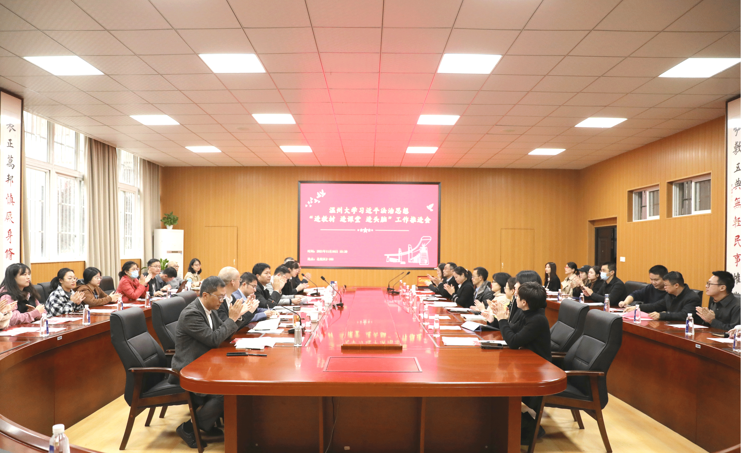 为深入学习贯彻习近平法治思想,全面落实立德树人根本任务,推动法学专业高质量发展,提升法治人才培养水平。11月16日,我校在北校区2号楼103报告厅举行习近平法治思想“进教材、进课堂、进头脑”(以下简称“三进”)工作推进会。校党委副书记庄兴忠,校党委委员、宣传部部长潘玉驹,教务处副处长夏远志,团委副书记易招娣,法学院领导班子成员出席会议,法学院各科室负责人、法学全体教师及学生代表参会。会议由法学院党委书记林钦主持。