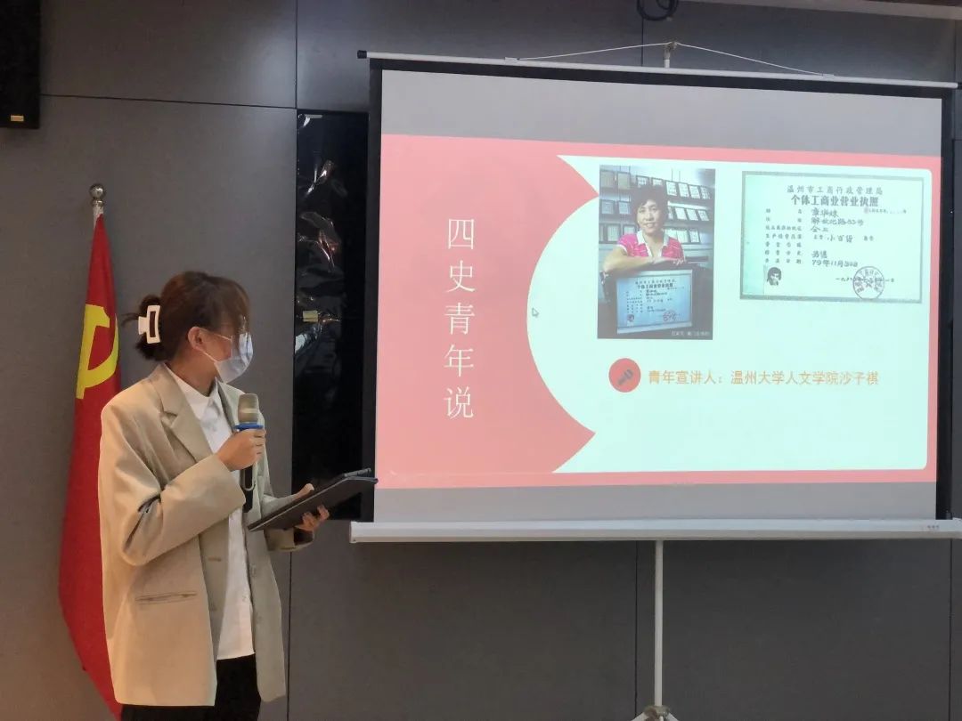 在党的领导下,中国人民勇于探索、不断实践,成功开辟了中国特色社会主义道路。宣讲人沙子祺结合全国第一个合法个体户章华妹和全国最早股份合作制信用社——温州鹿城城市信用社的创办者杨嘉兴的创业之旅,以小人物呈现社会主义发展史的大致脉络,生动还原历史细节。
