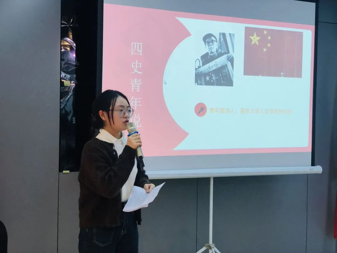 宣讲人林佳怡结合星空平台校友曾联松先生的个人经历,从抗日战争到解放战争,生动地叙述了中国共产党的峥嵘岁月,曾联松同志日以继夜地设计新中国国旗的场景令在场的所有人心潮澎湃。