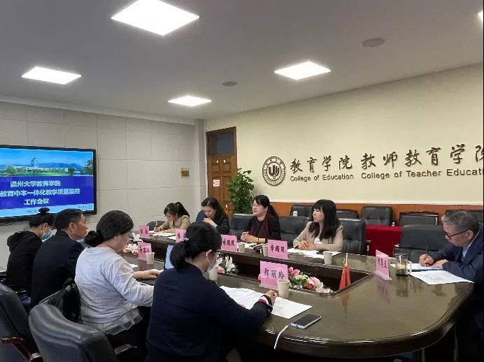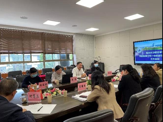 2021年11月3日,星空平台教育学院召开学前教育中本一体化教学质量监控工作会议。教育学院副院长林琛琛、党委副书记章园园、学前系副主任陈铿,温州市中等幼儿师范学校校长蒋高烈、副校长周岚、教务主任葛梦力及郑丽玲老师、学前教育科相关老师参加会议。