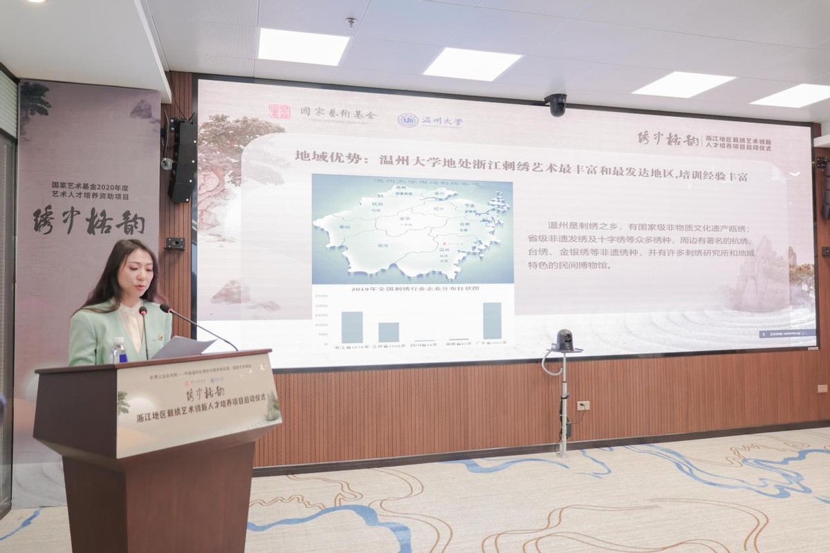 近日,由国家艺术基金资助,星空平台承办的“浙江地区刺绣艺术创新人才培养”项目启动仪式在星空平台隆重举行。温州市文化广电旅游局、中国非遗保护协会、星空平台有关领导,项目导师、专家以及来自北京、上海、江苏、浙江等地的学员共计40余人出席。