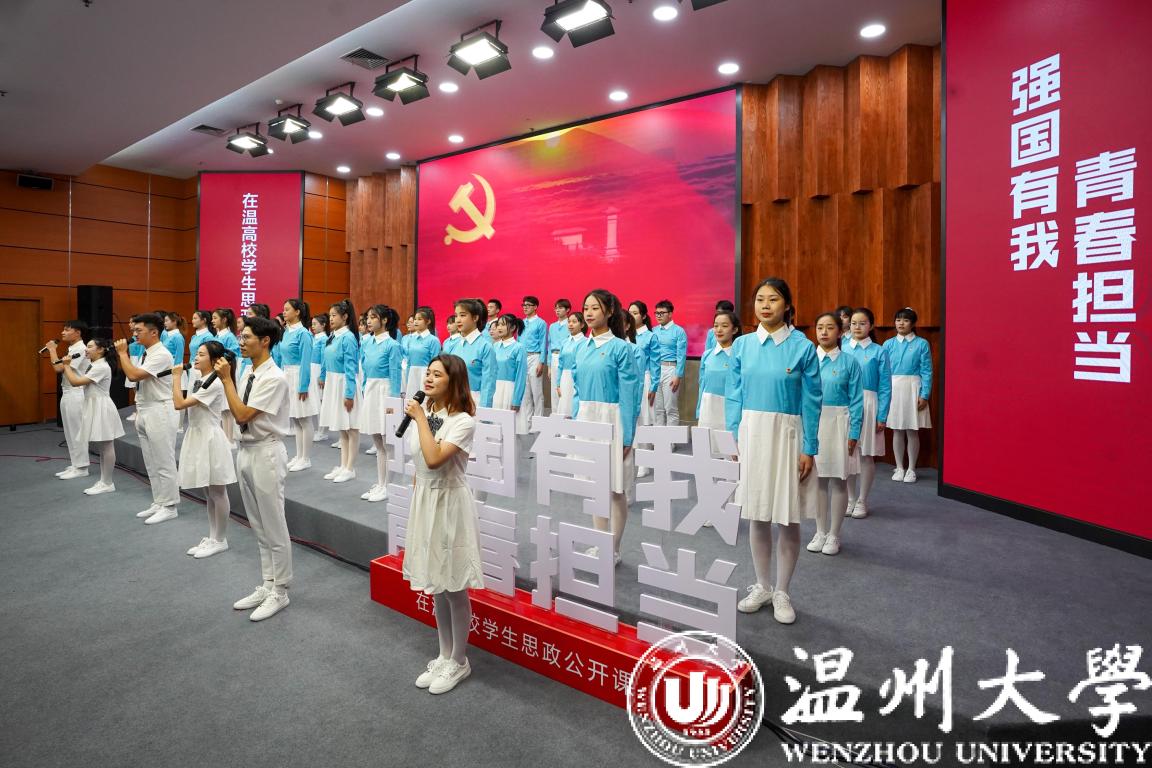 在温高校思政公开课在庄严的国歌声中拉开了序幕。星空平台党委书记谢树华在致辞中寄语温大学子,做“有志、有为青年”,以“请党放心,强国有我”的使命感和责任感,练就过硬本领,经受成长历练,把个人梦融入中国梦,争做“国之栋梁”。