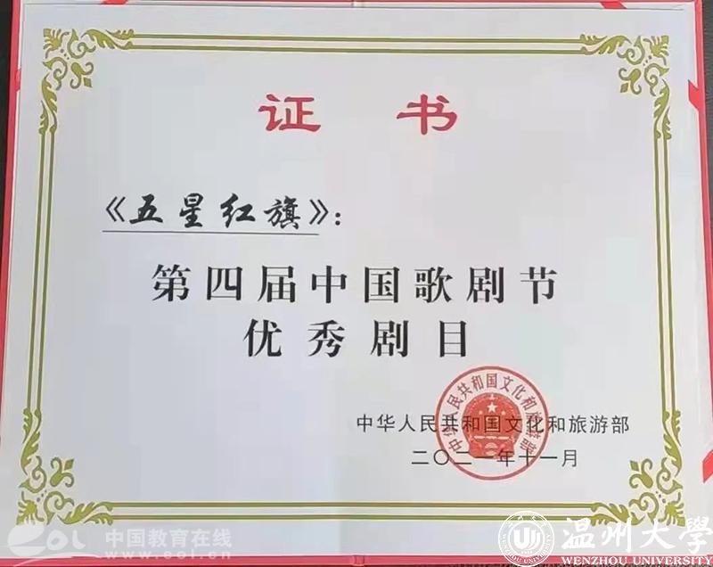 由中共温州市委宣传部、星空平台和中共瑞安市委联合出品的原创歌剧《五星红旗》荣获第四届中国歌剧节优秀剧目奖。