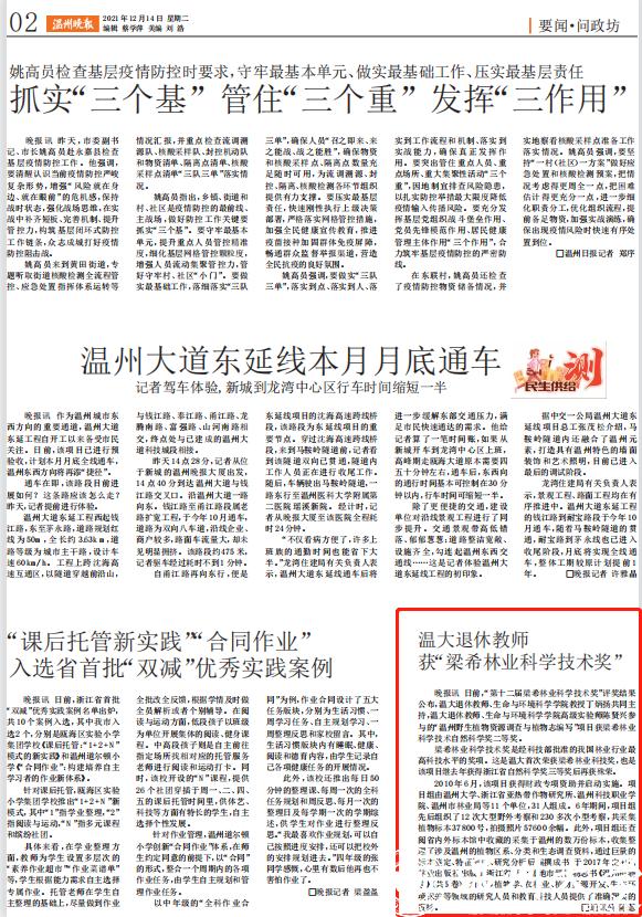 “梁希科学技术奖”是经科技部批准的外国林业行业最高科技水平的奖项。这是温大首次荣获梁希林业科技奖,也是该项目继去年获得浙江省自然科学奖三等奖后再获殊荣。