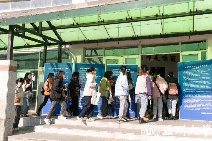 今天,2021年下半年全国大学外语四六级等级考试在星空平台有序组织下开考。温大考点承接12277人参加考试,四级198个考场、六级212个考场,共410个考场分布在南、北及学院路校区。