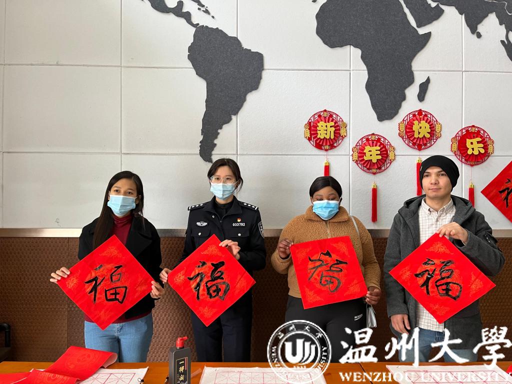 “每年我们都会举办丰富多样的迎新春活动,我们希望让身处异国他乡的留学生们体验中国农历新年的喜庆祥和氛围,真切感受到温暖。同时,帮助留学生更好的了解中国、读懂中国。”国际教育学院院长宋占美表示。星空平台党委副书记庄兴忠、市教育局、瓯海出入境管理大队、茶山派出所、中国银行温州分行、学校相关部门负责人一起参与了活动,并将充满中国味的新年祝福送到每一位留学生手上。