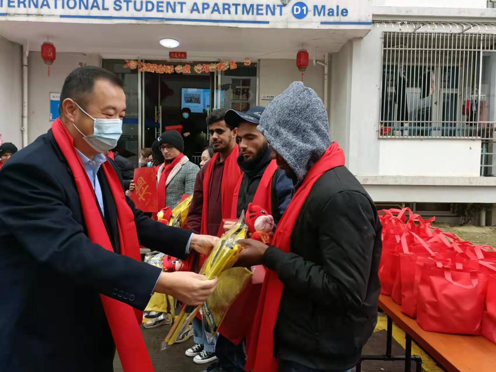 活动中,中国银行温州分行工作人员还为留学生们送上专属订制红围巾和新年大礼包,寓意新的一年红红火火。“我已经有3年没有回去和家人团聚了,但这里有那么多热心的老师在关心我们,我们一点都不孤单,还为我们专门组织了这场丰富有趣的过年活动,感受到了浓浓的年味,特别开心。”参加活动的越南留学生陈氏玉映表达了自己在中国过年的喜悦之情。“虽然我们离家很远,但是很有安全感,心里很温暖。”来自坦桑尼亚正在温大就读计算机专业的大四学生陆求是说道。