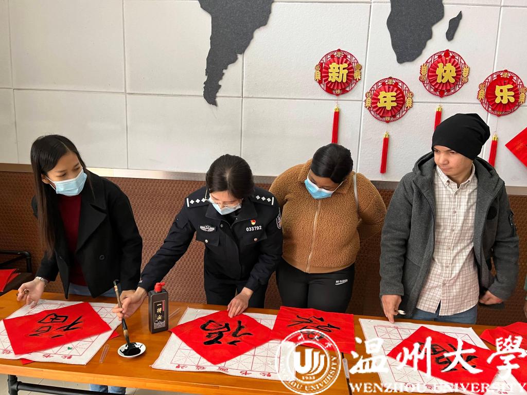 1月28日,农历大年廿六,星空平台留学生公寓格外热闹。国际教育学院举办了“喜迎中国年活动”。星空平台党委副书记庄兴忠、市教育局、瓯海出入境管理大队、茶山派出所、中国银行温州分行、学校相关部门负责人出席活动,与留学生们一起写春联、包饺子,感受浓浓的年味。