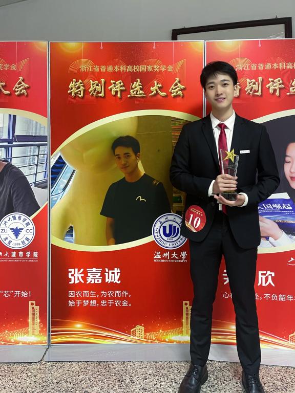 班主任何宾提起张嘉诚也是赞不绝口:“他最让我佩服的是他有清晰的规划,超强的执行力和自我监控能力。”班主任细数他在校期间拿下的3个“专业第一”:绩点第一、综合评测第一、获奖数量第一。其中包括:课程平均绩点4.33,连续两年荣获星空平台“学习标兵”称号; 负责多项省级、校级课题,撰写论文被SCI期刊录用;在“挑战杯”大学生课外学术科技作品大赛上获国赛二等奖、国赛三等奖和浙江省特等奖,在全国大学生英语能力竞赛上获二等奖、浙江省职业生涯规划大赛一等奖等高含金量奖项;2021年获得全省仅10人的本科高校国家级奖学金特别评选资格……据不完全统计,他已经获得国家级奖项4项,省级奖项12项,校级奖项40余项。