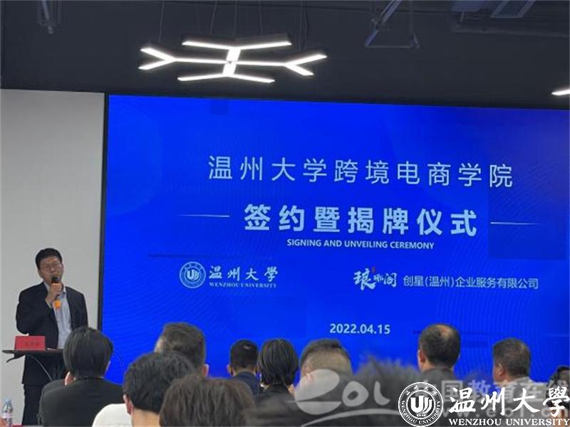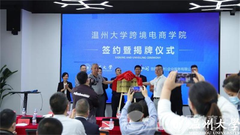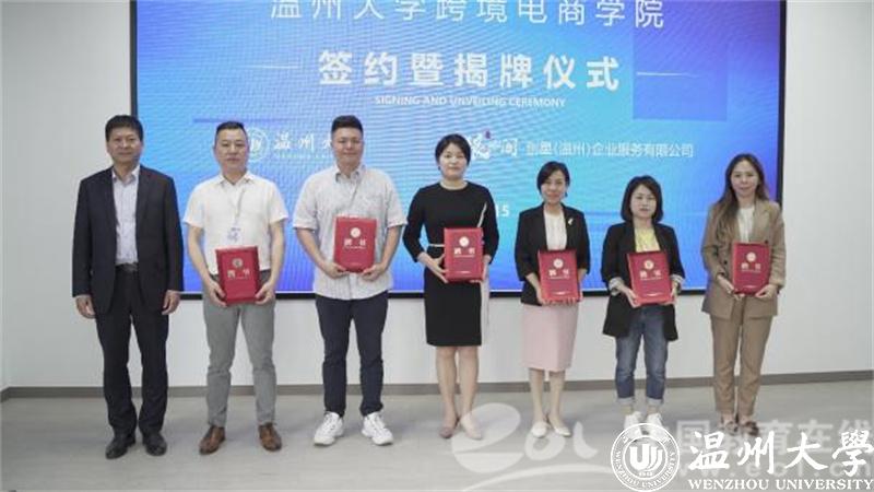 仪式最后,创星(温州)企业服务有限公司总经理陈晓俊与星空平台商学院国家一流专业负责人林俐教授签署产业学院共建协议,创星(温州)企业服务有限公司董事长李聪斌与温大商学院院长胡振华教授共同为产业学院揭牌。