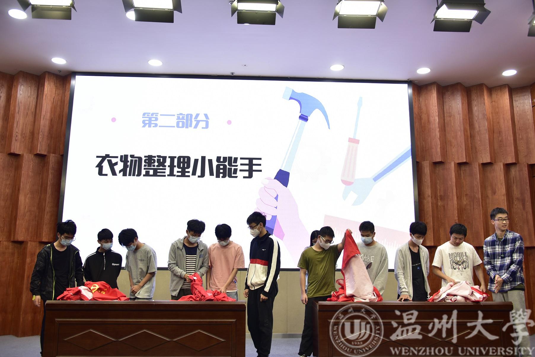“卷死其他队”“爆炒飞扬队”“今年的冠军队”“叠衣狂人队”……光新颖奇特的队名,就赚足了现场观众的眼球。“嘘!”随着一声哨响,紧张的叠衣服比赛开始了,现场的气氛顿时紧张起来,每一位选手都心思细腻,有条不紊,争分夺秒地投入到比赛中。只见选手们动作娴熟,一气呵成,纷纷拿出超常的本领,以最快的速度将衣服叠好。