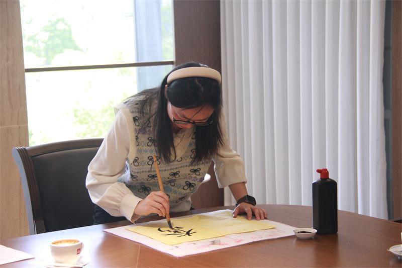 同时,学子们还结合书法特长,用毛笔书写青春感想,一笔一划写下青春誓言:“奋斗的青春最美丽”,彰显了扎实的师范技能功底,展示自身蕴含的“博爱雅艺”师范气质。“我们当代青年生长在最好的年代,应该抓住历史机遇,传承红色根脉,在奋斗中书写美丽青春,书写无悔青春。”一位思想领航员说到。在会议的尾声,各位团员一起重温入团誓词,不忘永久奋斗,牢记青春使命。