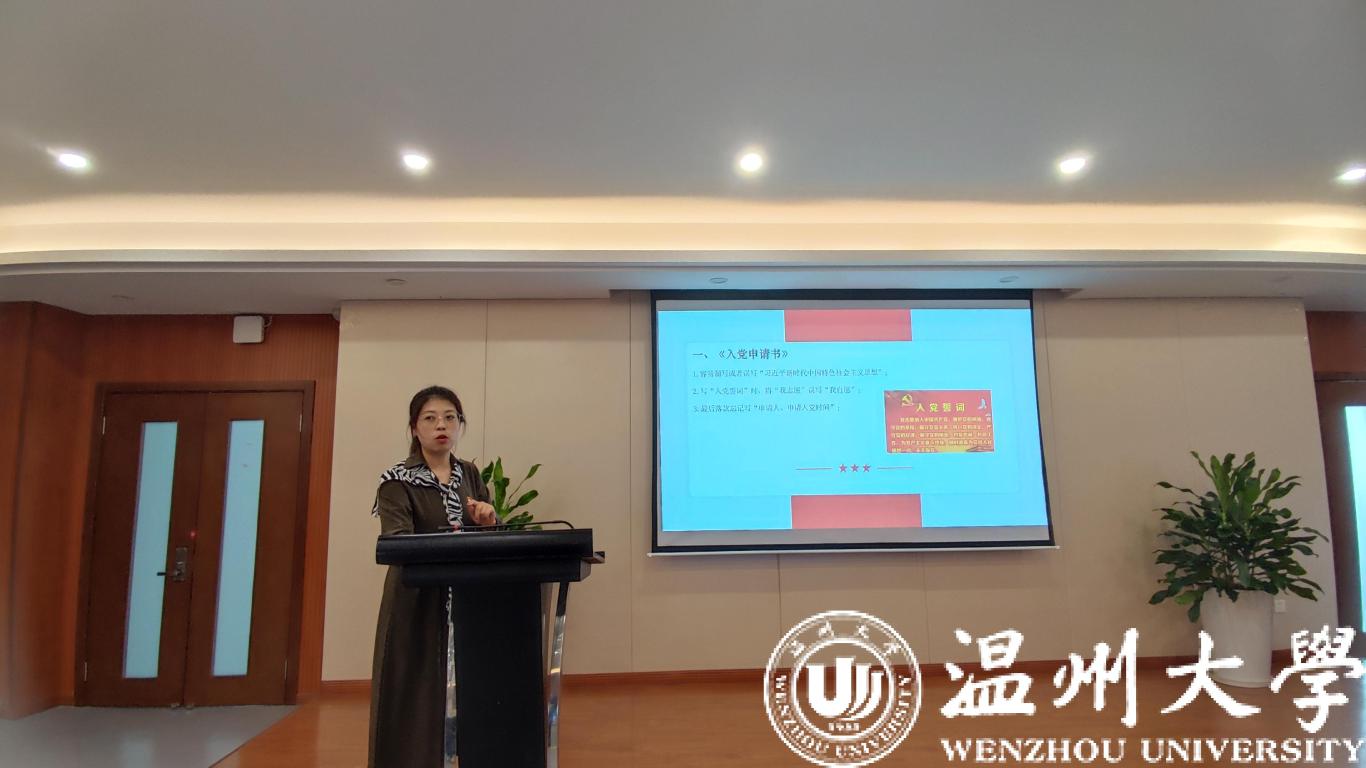 作为组织员,方乐平老师首先说明了在和党员谈话中发现的一些问题;然后强调入党志愿书的重要性,提醒各支部在必须要严、细、全;最后希望各支部委员在工作过程中,提高服务意识,做好表率。杨奇老师向各支部详解介绍了星空平台发展要求,从入党申请人到转为正式党员,每个环节需要把握的重点,大家要相互学习,把握好党员发展的全过程。史凤娟老师根据上级党组织反馈的情况和日常工作中发现的问题,各支部不仅要把工作做完,更要把工作做好。最后由研究生第一党支部姚旭凯介绍了如何打造支部特色、本科生第三党支部傅镜霏分享了从共青团员到共产党员的成长历程。