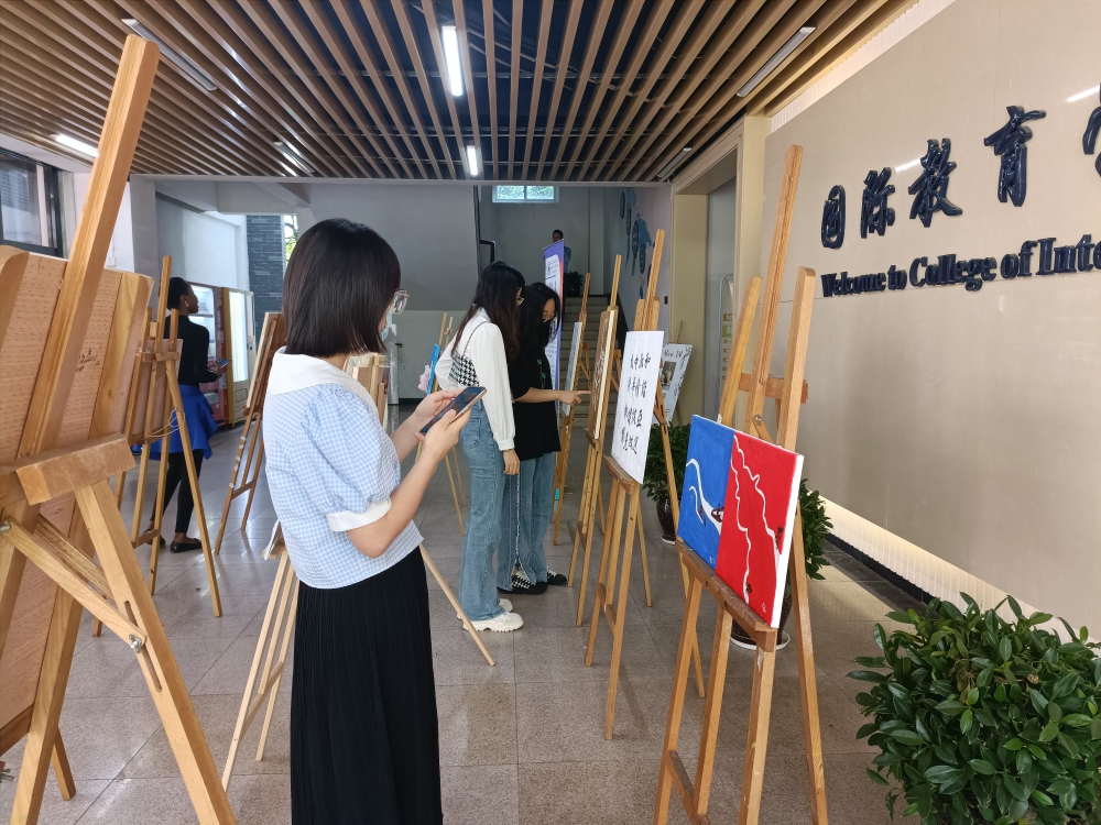 “我知道温州是一个非常文明的城市,也是要举办亚运会的城市之一,我爱学校也爱温州,虽然亚运会要延期了,但还是希望通过画作来展现我的想法,为亚运、为温州加油。”来自尼日利亚的留学生明珠喜爱绘画,作品在留学生圈子小有名气,本次活动她使用自己擅长的油画技巧结合龙舟元素献礼亚运。与朋友相约书画展的留学生陈梦瑶是祖籍瓯海丽岙的葡萄牙华裔,对于亚运龙舟赛事将在家乡瓯海举行,她表示很是期待。