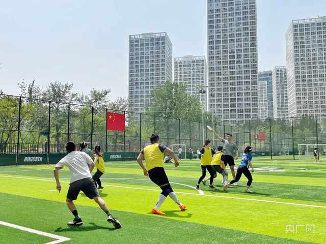 最近一个周末,在北京国贸附近的一片足球场地上,记者看到,几个小时下来,踢球的队伍没有多少,玩飞盘的队伍倒是一波接一波。