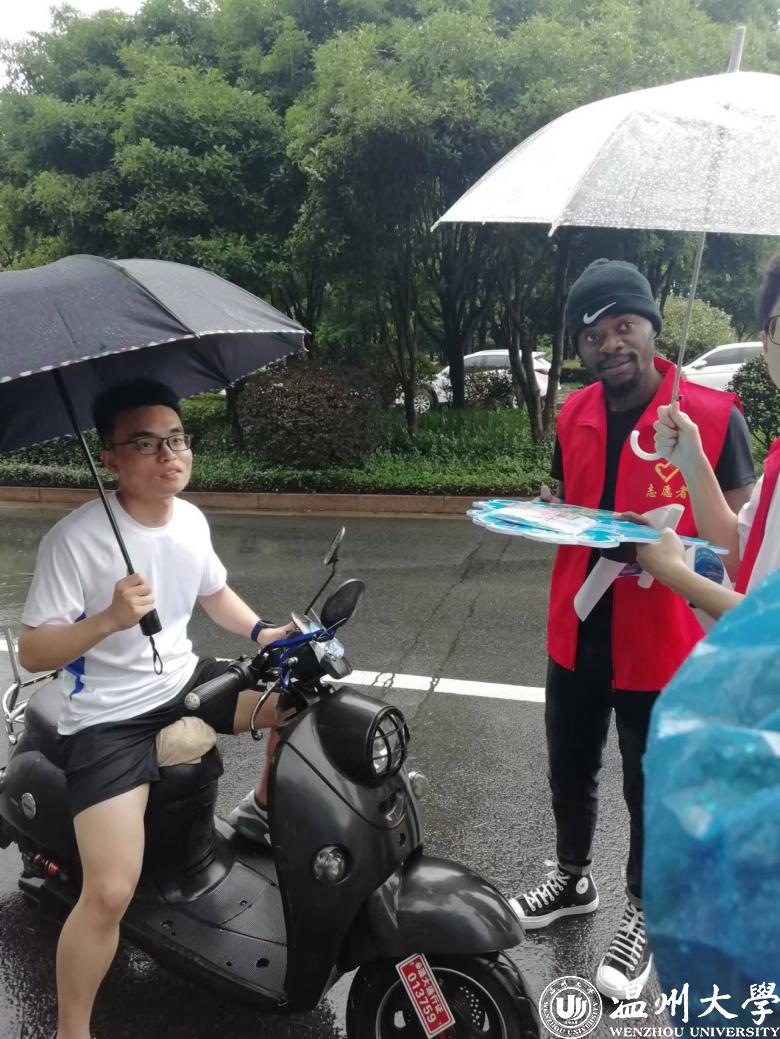 “一人一盔护安全,车不载人安全性”、“只戴头盔不待人,各行其道不‘霸道’”,5月30日下午,3名留学生冒着大雨与星空平台外国语学院的志愿者一起,在温州市交警支队四大队八中队民警的带领下,在瓯海区茶山街道中心南路,开展交通文明劝导活动,用实际行动支持和参与温州的文明城市建设。