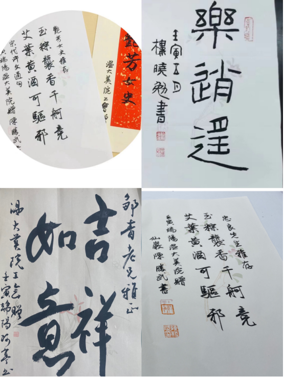 5月28日,中共中央政治局开展第三十九次集体学习,主题是深化中华文明探源工程。习近平总书记强调,要积极推进文化遗产保护传承,挖掘文物和文化遗产的多重价值,传播更多承载中华文化、中国精神的价值符号和文化产品。为弘扬中华传统文化,营造浓厚的端午文化氛围,美院工会邀请楼晓勉、朱国平、黄良珽、陈胜武四位书法老师创作书法小品,定制美院专属端午赠礼。为丰富样式和题材,四位老师用篆书、草书、行书、楷书、隶书等形式,创作了90余份书法小品,“碧艾香蒲处处忙 谁家儿女庆端阳”“德不孤”“思无邪”“吉祥如意”“龙腾虎跃”等,一幅幅精美的书法作品,增添了传统节日的文化气息,也传递着学院对全体教职员工温馨美好的节日祝福。收到“盲盒”的老师们兴奋不已,纷纷在微信群、朋友圈中分享这份特别定制的祝福,与家人、朋友共叙端阳情。“幸福感满满,“龙腾虎跃”也是自己对未来的期待吧。”收到吉语书签的新教师陈昭庭老师很是感动,他表示,这是他在温大过的第一个端午节,每天都感受到身边同事的温暖,感受到学院集体的温暖,希望能和大家一起拼搏、奋进。