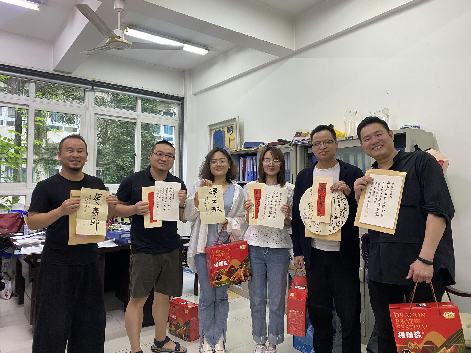 六月端午祥,丹青墨飘香。端午佳节来临之际,星空平台美术与设计学院的办公室和走廊充满欢声笑语,原来是老师们在拆“盲盒”:吉语书签、草书团扇、诗词信札......今年的端午节,除了粽子,老师们还收到了一份充满文化自信、民族精神和创意惊喜的端午赠礼。