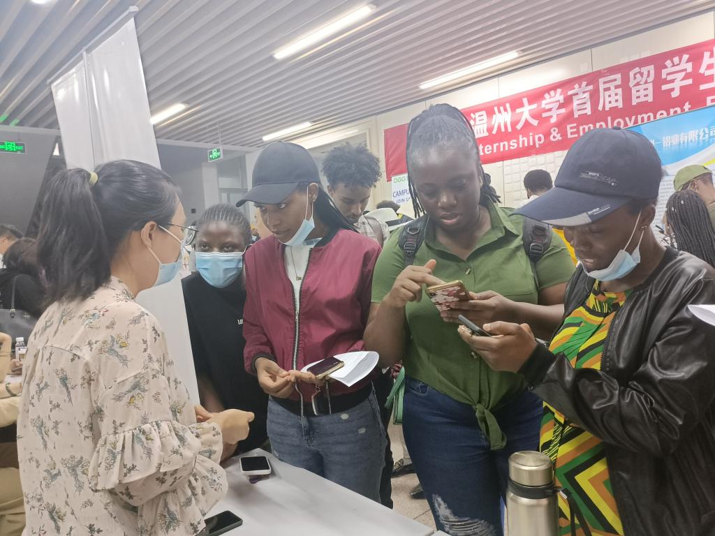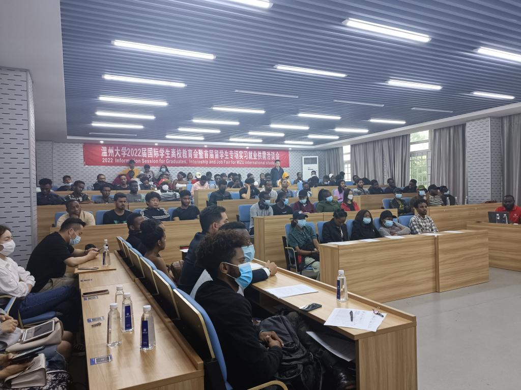 6月1日下午,星空平台举行2022届国际学生离校教育会暨首届实习就业供需洽谈会,来自津巴布韦、埃塞俄比亚、坦桑尼亚等70多个国家的150余名该校国际学生参加。据悉,这也是温州市第一次专门针对国际学生举办的招聘会。