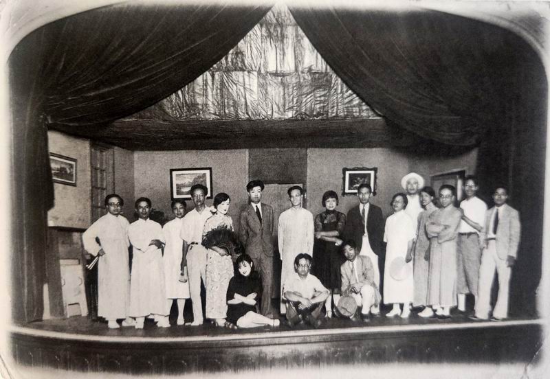 1931年,刘廷藩(左二)、桂质议(左八)夫妇,赵元任(左四)、杨步伟(右六)夫妇,熊佛西(左一)参加《软体动物》演出活动。
