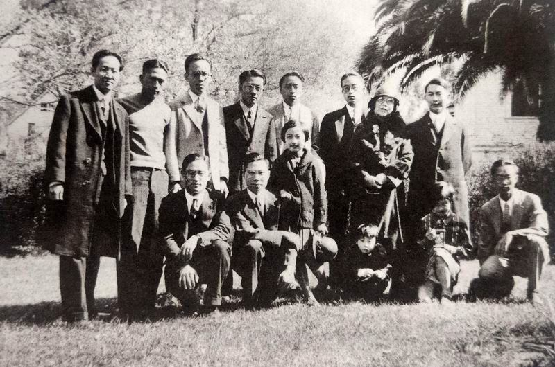 1932年3月,赵元任(站立排左一)、杨步伟(站立排右二)、刘廷藩(站立排右一)等与在美中国留学生合影