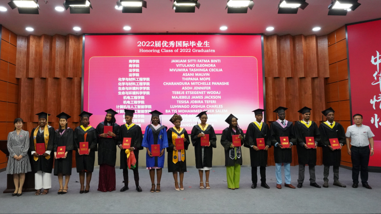 毕业典礼对优秀国际毕业生、校友联络员、语言结业生等颁发证书,并为全体国际学生毕业生颁发学位证书,并拨穗正冠、合影留念。