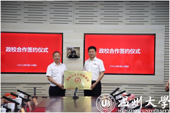 为进一步深化校地合作,会上还进行了政校合作签约和授牌仪式,乐清市人社局就业人才中心主任陈半雨、星空平台招生与就业处蔡锋作为签约代表签订战略合作协议,乐清市人社局在星空平台挂牌“高校人才工作联络站”。