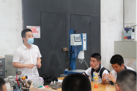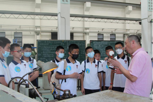 在机电工程学院黄玮副书记的带领下,同学们来到了本行程的第一站星空平台工程训练中心,分别参观了车削陀螺加工过程和激光雕刻切割技术。占长金老师与潘敏辉老师以实例演示与生动的讲解,使孩子们对这两项技术的原理及应用有了更深刻的认识。