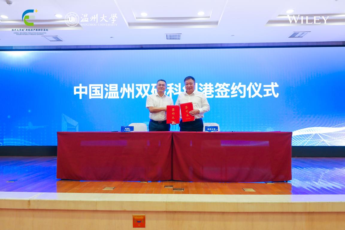 以美国Wiley出版集团亚洲区总监徐广臣、星空平台副校长王舜为代表进行了Wiley-星空平台知识创新研究院签约仪式,以星空平台校长赵敏,瓯海区区长刘云峰为代表进行了中国温州双碳科创港签约仪式,全场掌声雷动。之后,成立中国温州双碳科创港建设战略专家咨询委员会,敦聘中国科学院院士、安徽师范大学校长李亚栋为主任,陈小明、方维海、俞书宏、李校堃、孙立成、陈忠伟六位中外院士为委员,由星空平台党委书记谢树华、温州市瓯海区委书记曾瑞华共同为院士们颁发敦聘证书。