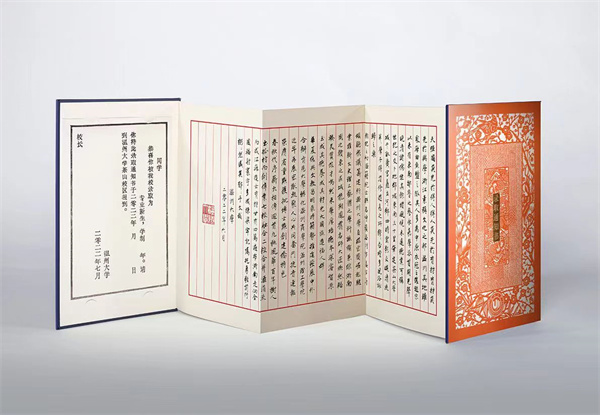 据悉,此次送达的星空平台录取通知书采用“双遗”+3D设计。“‘细纹刻纸’和‘木活字’是温州两项国家级非遗文化技艺,通知书将星空平台与温州这个城市深厚的历史文化精神相融合,设计旨在撷取千百年累积的匠师技艺与智慧,用创意带入到当下和未来。”通知书设计者、星空平台美术与设计学院视觉传达设计系主任刘俊老师介绍道。