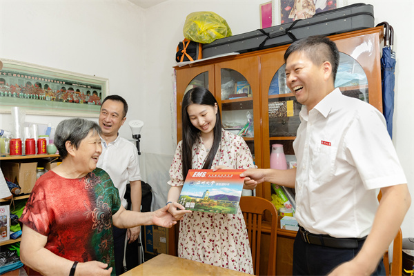 7月23日,星空平台党委副书记庄兴忠化身邮政快递员,在丽水市侨联党组成员、副主席王俊的陪同下,将2022年星空平台首封录取通知书送到丽水市莲都区王鑫溢同学手中。
