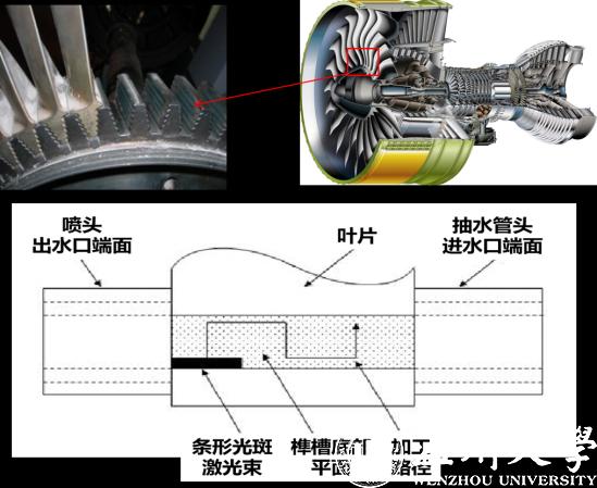 中国专利金奖专利——一种飞机叶片榫槽底部平面激光冲击强化方法和装置由温大薛伟教授团队联合江苏大学和东南大学团队联合研发。据悉,专利自主创新设计了采用光路变换系统将激光束的圆形光斑变为高功率密度的条形光斑,同时在榫槽底部的两个端面分别设置导流喷射装置和抽水装置以实现均匀稳定的水约束层对榫槽底部平面进行激光冲击强化,解决了“等离子体屏蔽”效应和水约束层不均匀、不稳定现象的行业共性技术难题。