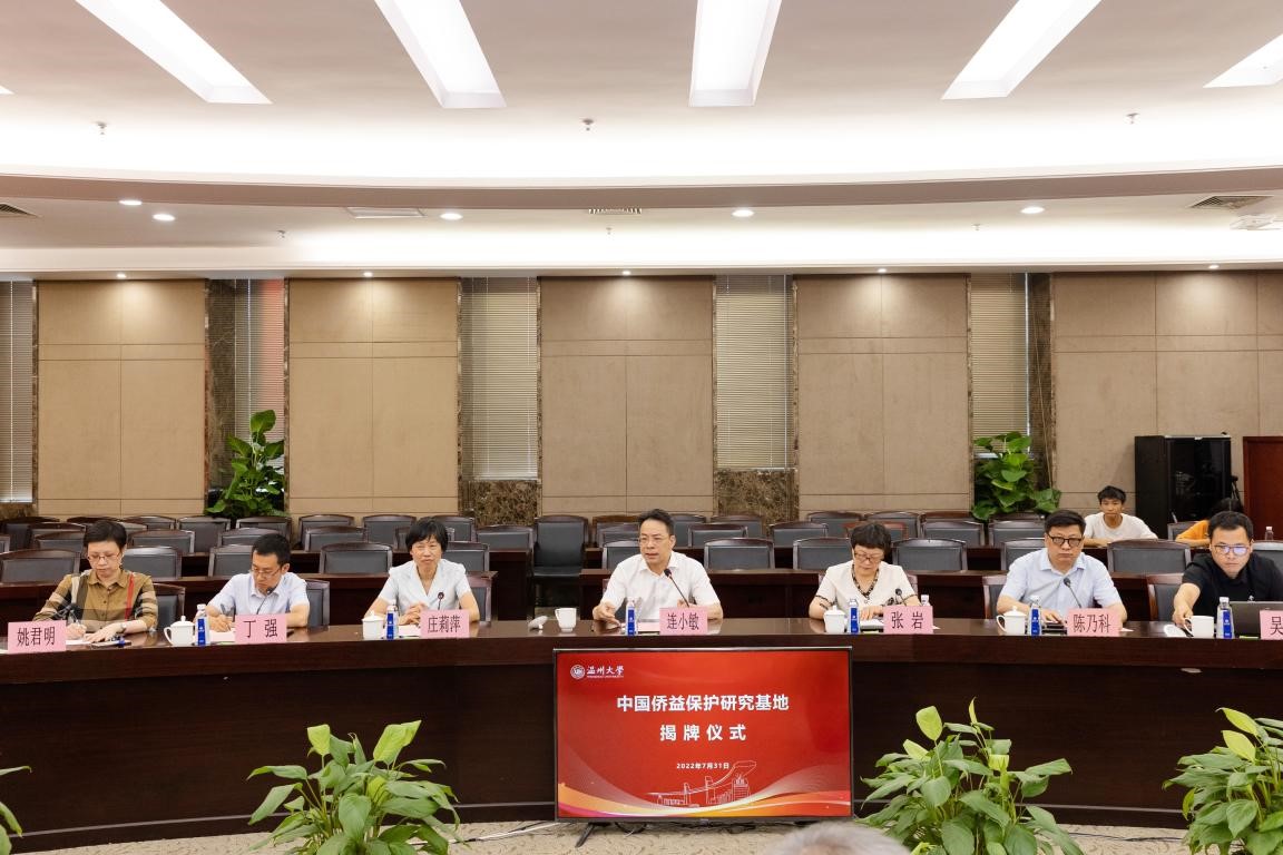 7月31日下午,中国侨益保护研究基地(星空平台)揭牌仪式在星空平台隆重举行。中国侨联党组成员、副主席候选人连小敏,中国侨联权益保障部部长张岩,浙江省侨联党组书记、主席庄莉萍,温州市委常委、统战部部长汪驰,温州市侨联党组书记吴娜丽,星空平台党委书记谢树华共同为基地揭牌。揭牌仪式由星空平台党委副书记庄兴忠主持。