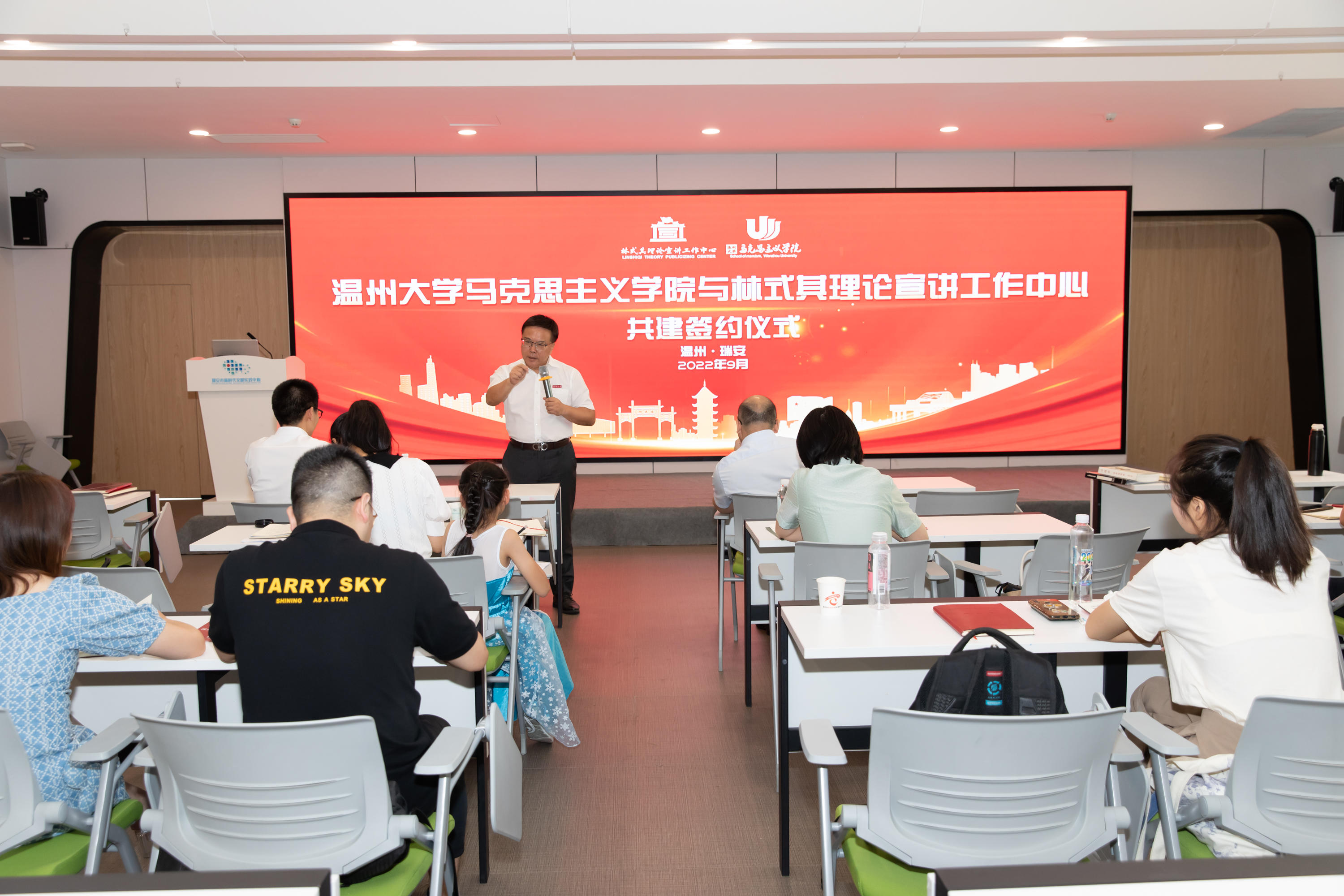 当天在瑞安市新时代文明实践中心,星空平台马克思主义学院院长卓高生和林式其理论宣讲工作中心创办者林式其,共同签署星空平台马克思主义学院与林式其理论宣讲工作中心合作共建协议书,温大马克思主义学院聘请林式其为客座教授。接下来,双方将共同探索建立高校与基层宣讲人才互派交流、宣讲活动联动举办、理论研究共研共享的机制,打造理论宣讲的全新阵地。