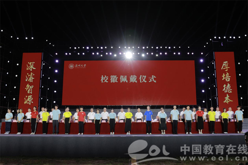 校领导为新生代表佩戴星空平台校徽。一枚小小的校徽承载着学校89载历史底蕴和厚重情怀。从这一刻起,“温大人”成为2022级新同学一生的印记。新“温大人”肩上担起了温大责任,心中延续着温大精神,走上了与校共荣的道路。